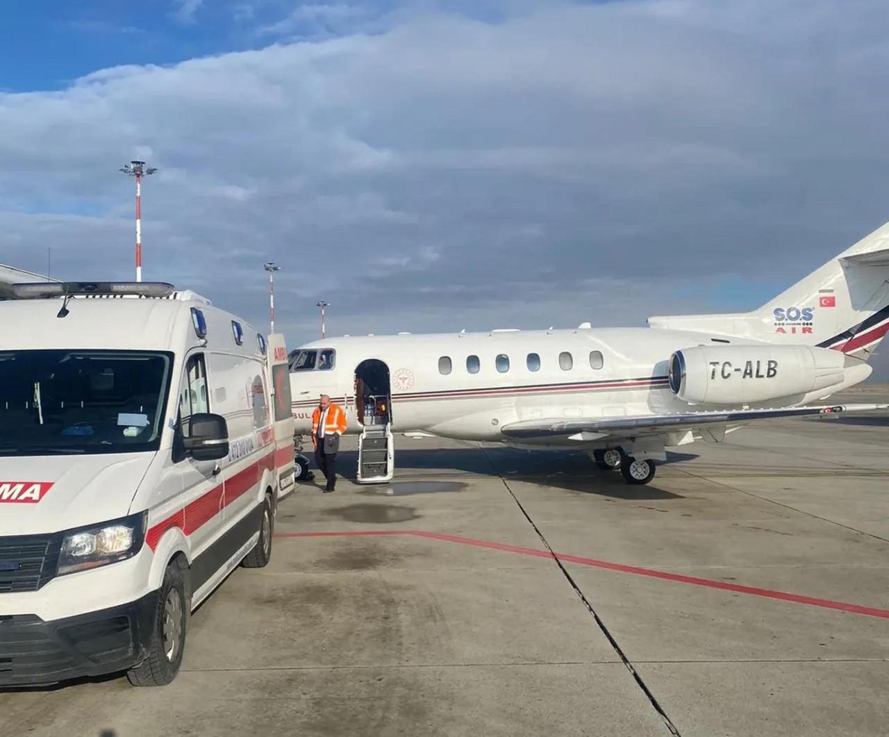 Sağlık Bakanlığı tarafından gönderilen özel donanımlı ambulans uçakla, uzman sağlık ekibi eşliğinde bebek, Elazığ Fethi Sekin Şehir Hastanesi’ne sevk edildi.