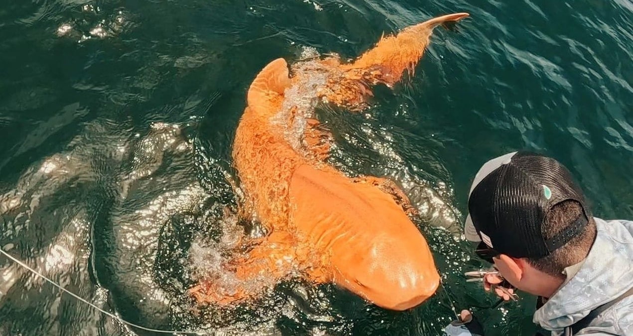 Kosta Rika açıklarında yakalanıp serbest bırakılan sıra dışı bir hemşire köpekbalığı, bilim dünyasının dikkatini çekti. Spor balıkçıları tarafından Karayip Denizi’nde görüntülenen köpekbalığı, alışılmış kahverengi tonlar yerine parlak turuncu rengi ve beyaz gözleriyle kayda geçti.