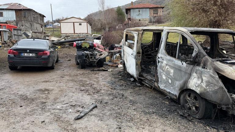 Ankara’nın Çamlıdere ilçesinde, Çukurören Mahallesi Muhtarı Hasan Sağlam ve taşıt alım satımı ile uğraşan oğlu Ali Osman Sağlam’a ait ATV, minibüs, otomobil ve kamyonet, dün sabah saatlerinde evlerinin önünde park halindeyken, 3 kişi tarafından benzin dökülerek ateşe verildi.